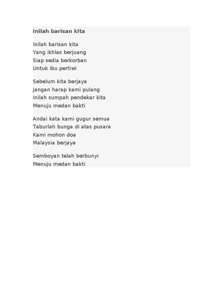 Lirik Inilah Barisan Kita. Patriotik Malaysia Inilah Barisan Kita Lyrics Lyrics My. Lirik Lagu Inilah Barisan Kita Lagu Patriotik.